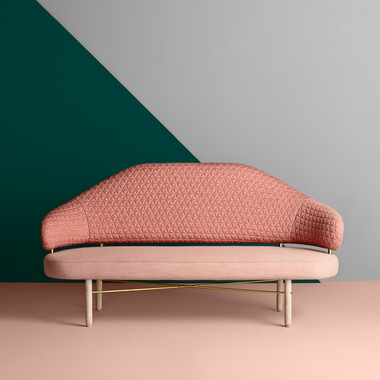 Simone seeks to be the main character in every play, to be the star of the show in every room. We have taken care of every little detail, carefully studied every curve of the sofa in order to make it attractive to the naked eye from any angle, including its back, Simone does not want to be punished against the wall. Elegant and flirty, catches the attention of every person in the room, with its back suspended over the seat letting us see the beautiful gap between both parts and the golden metal bars that separate them. Backrest and seat have been upholstered with different colors & texture fabrics, its wooden legs and metal structure gives the whole piece a unique and exotic character. Its light structure, its sensual curves reminds us to a grand piano. No wonder why it borrows its name from the outstanding singer and pianist Nina Simone.
